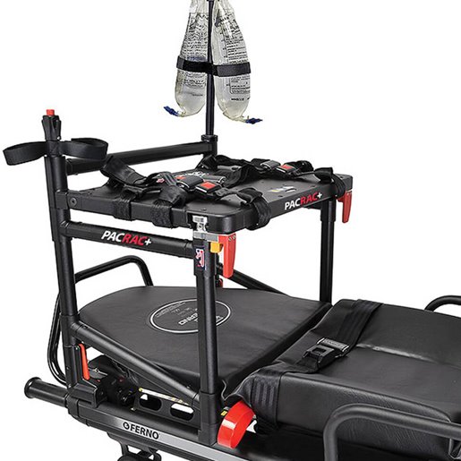The PacRac+ Instrument Platform attaches to compatible cots to securely hold defibrillators, heart monitors, and other equipment during patient transport. The PacRac+ fastens directly to the foot-end of the POWER X1 Ambulance Cot, POWERX, iNX Integrated Patient Transport & Loading System or Mondial Monobloc Series Cots, enabling quick and easy access to equipment. Constructed from powder-coated aluminum, the PacRac+ is lightweight, durable, and easy to clean.